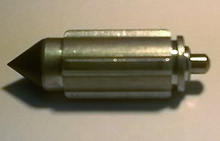 L'altro spillo di cui si parla è quello collegato alla saracinesca del gas, si inserisce nel polverizzatore ed è regolabile spostando la posizione del seeger in una delle tacche presenti. Essendo conico, l'accoppiamento con il polverizzatore determina un passaggio più o meno accentuato della benzina a seconda di quanto lo spillo è inserito dentro il polverizzatore stesso...
