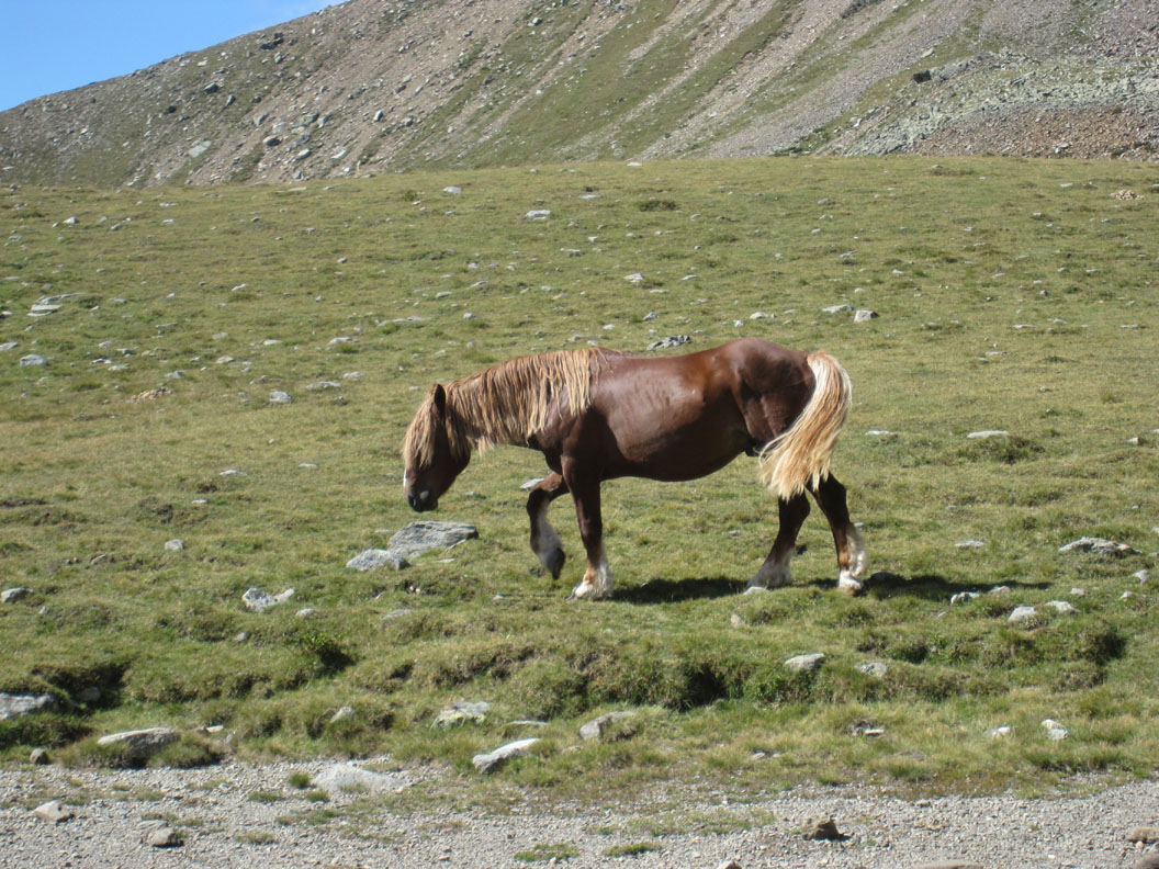 Giorno due, nonché per definizione il più duro… Sveglia alle 06.15 per andare a fare il filtro e la catena alla mia piccina.. e fuga dal ns appartamento, visto che il risveglio è anche peggio di quello del giorno prima !! Pronti via… “oggi sei giudice alla 11 “.. gass si parte….e si sale, si sale tra prati e bosco.. fino ad arrivare al non sentiero in mezzo alle pietre bagnate ricoperte di muschio.. azz e riazz.. mi spezzo le braccia e mi impunto 100 volte, e penso “vabbe’ il peggio è passato”, ma mi trovo quel passaggio in discesa in mezzo alla spaccatura, che mi fa prendere un colpo… 400 di precipizio sotto sono troppi anche per me… scendo e con calma porto a mano la moto di sotto… …alla fine arriviamo su fin sopra la frana, dove lo sfortunato Little ha la sua zona… tira un vento bestia… bbbrrrr,,, si riparte e mi aspetta una salita a gradoni di 40/50 cm uno dietro l’altro .. la faccio tutta, ma la fatica si fa sentire.. ed il Braulio pure… ma arrivo su fino al laghetto .. ecco la mia zona. Mi accascio a terra per riprendere fiato che tutto insieme sbuca una mandria di cavalli dal nulla… bellissimi.. ma il padrone del baccellaio dov’è?? Mi aveva raccontato Ughetto che nei giorni scorsi aveva trovato il capobranco e per poco non li “mangia”… cerco di avvicinarmi ai cavalli ed ai puledrini, ed ecco che appare “fiasco”, così è stato soprannominato, per via del suo… “apparato riproduttivo” .. eheheh mi si avvicina a una decina di metri.. mi guarda per un minuto (chissà che pensa) e tutto insieme fa un verso così strano che capisco come per magia cosa devo fare …. Mi tolgo velocemente dai coglioni che è meglio !!….passo ¾ ore in quella zona e ne vedo di tutti i colori… certo che il trialista è proprio una bestia strana eh! Si aggira da solo o in gruppo dentro la zona prendendo a calci tutto ciò che si muove o si potrebbe muovere, amici compresi, studia 70 possibili traiettorie, (che poi non so perché ma le chiedevano tutte a me)e fanno l’unica che non avevano previsto, , discutono a voce alta sulla possibile marcia cercando consensi , ma essendo da soli a 2500 mt.. chi ci conside